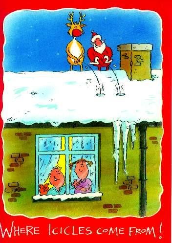 Then when he began to load the sleigh one of the boards cracked and the toy bag fell to the ground and scattered the toys. So, frustrated, Santa went into the house for a cup of coffee and a shot of whiskey.